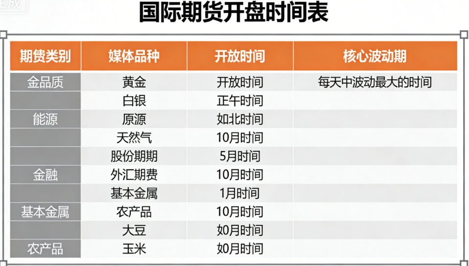 三、热门国际期货品种开盘时间及核心波动期(北京时间)